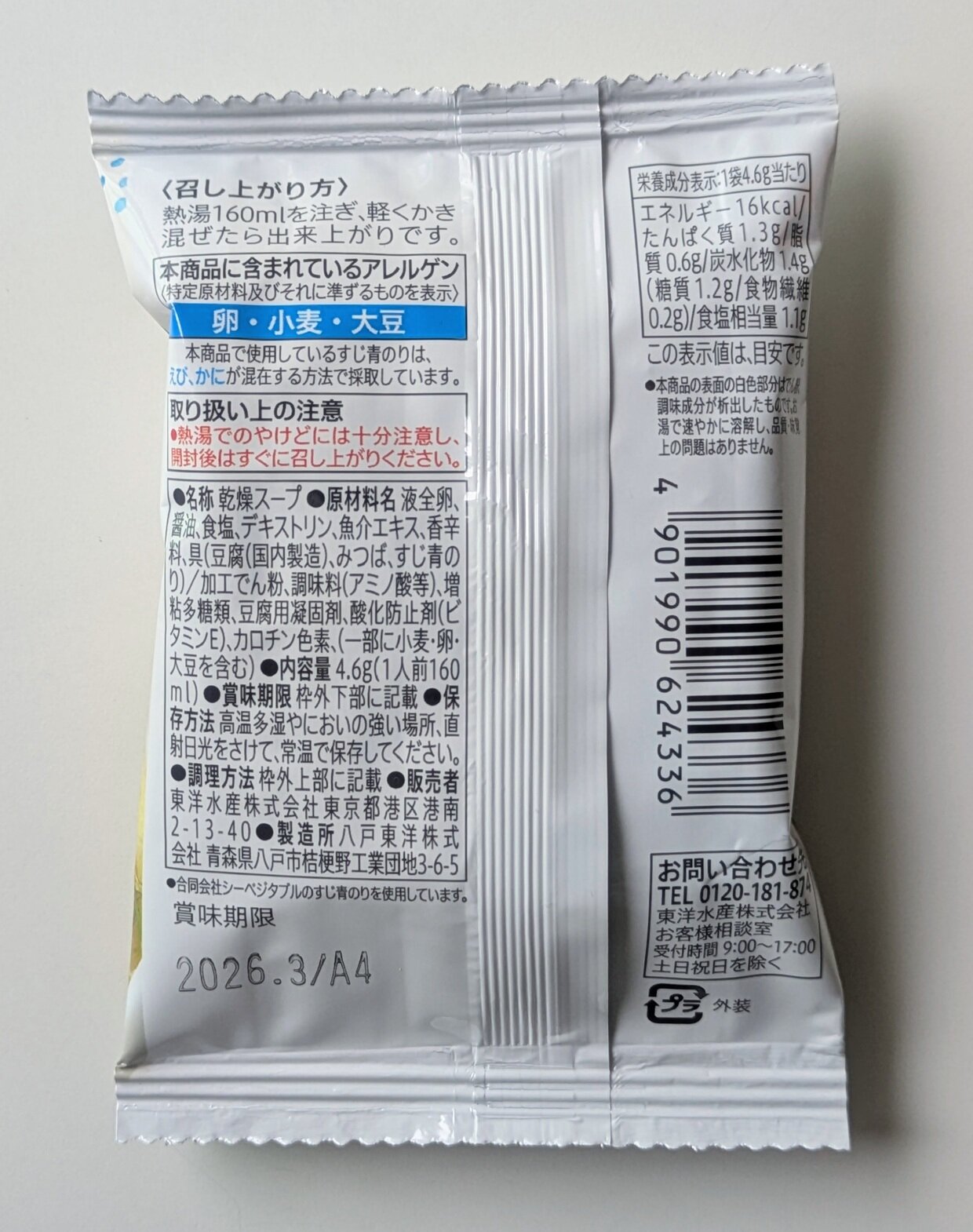 【すじ青のりの豊かな香り お豆腐とたまごのスープ(セブンプレミアム)】