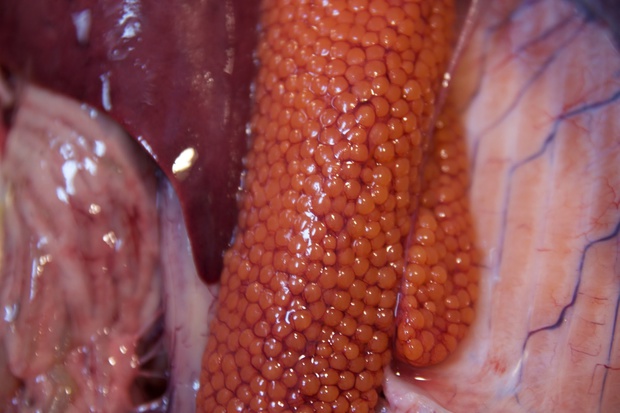 産卵中は、オスもメスも大きな口を開けて全力で命を残します。