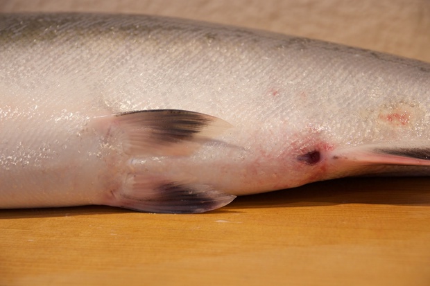 体の色が銀白色になり、ウロコがはがれやすくなるものの