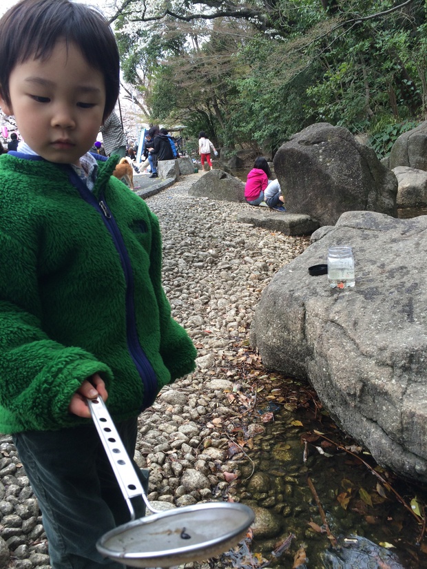 たっぷりとおたまじゃくしをGETして満足げな長男。