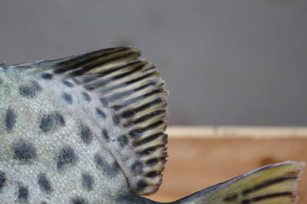 銀白色の体に多数の黒色斑点の美しさに