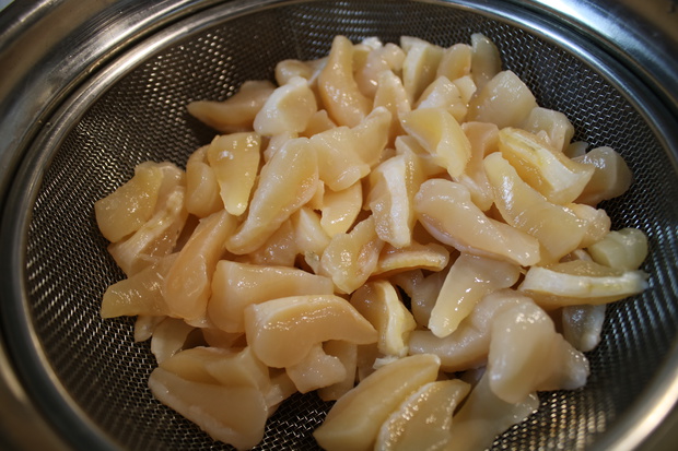 塩分3%ほどの塩水で洗って、ザルで水切りしてください。