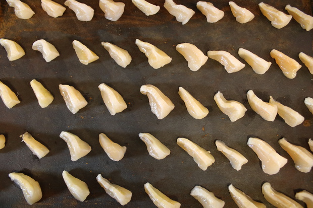 宝石としての真珠を採取した後、殻に残る貝柱部分(閉殻筋)。