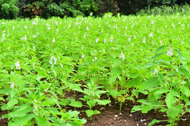 この白い花は、ゴマの花。