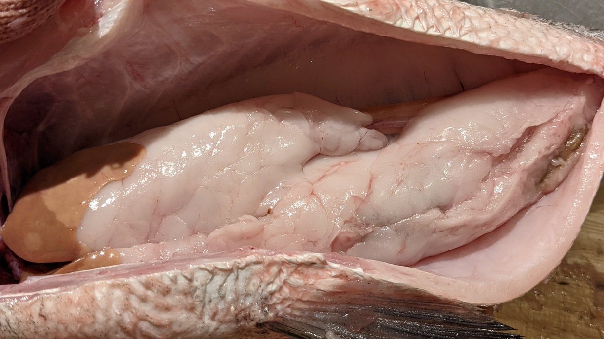 ウロコをとってもなお、輝かしく綺麗なヒラスズキ