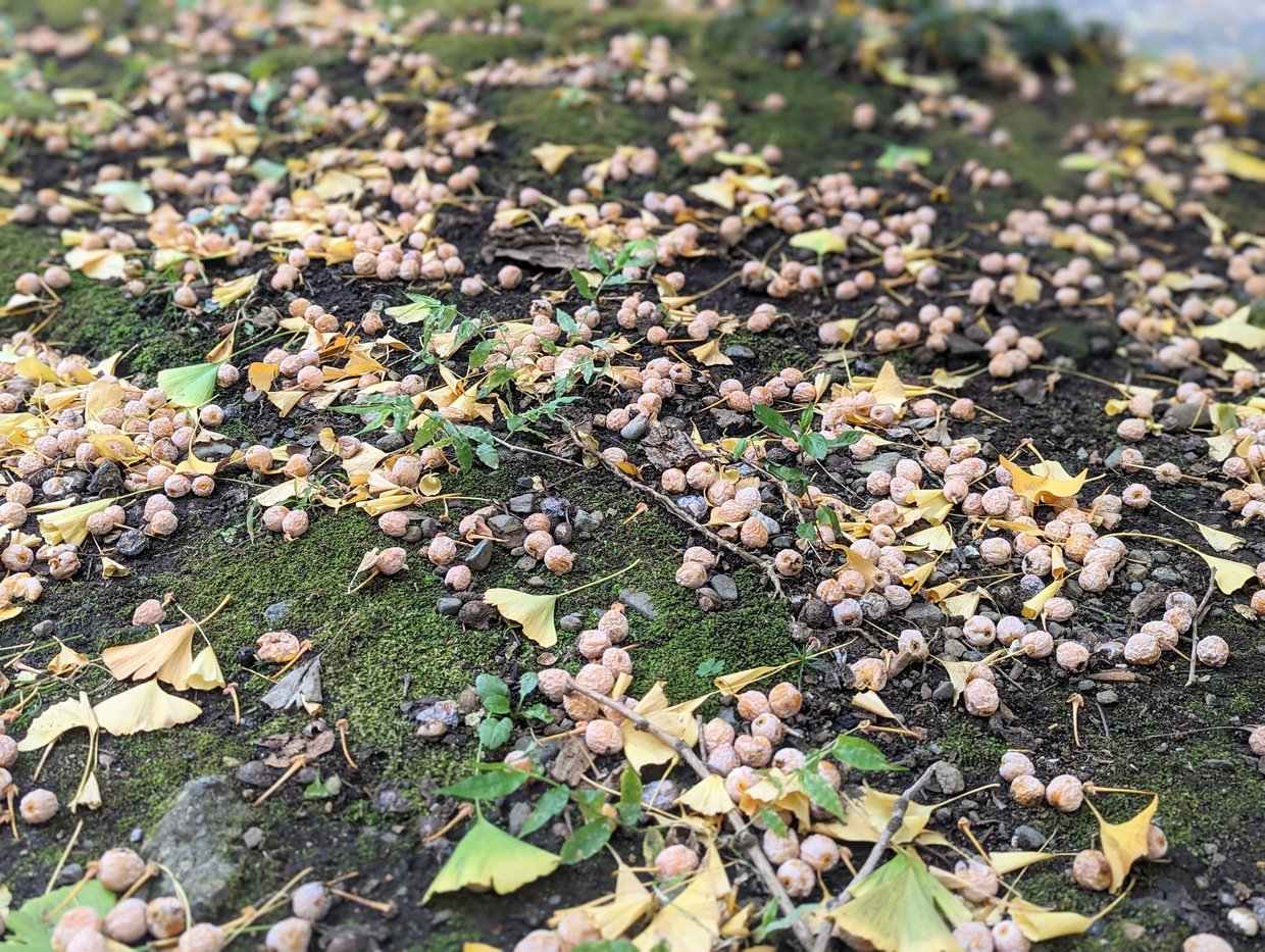 靴底の隙間に擦り込まれるように入り込んだギンナンは