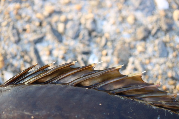 背びれ・腹びれ・臀(しり)びれに毒を含んだ棘があるので