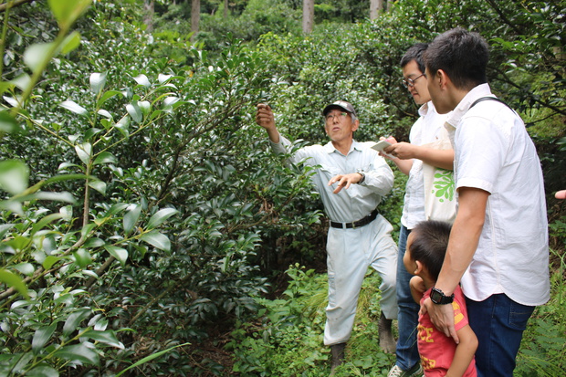スパイクのある地下足袋でこの斜面に立ち収穫作業。