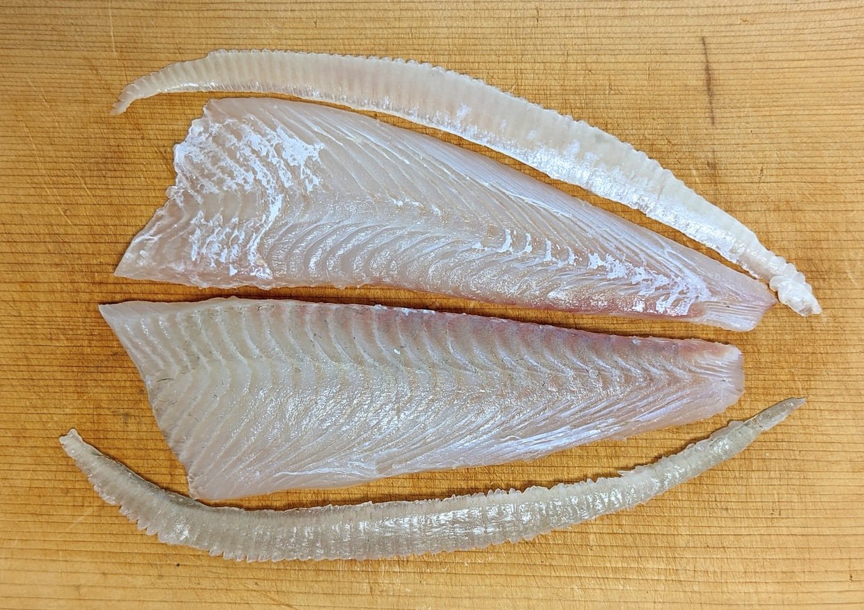 離れて切り取ってある細長い部分がエンガワと呼ばれる部分。
