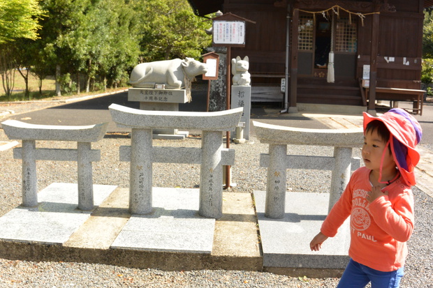 「願掛け鳥居」という3つの小さい鳥居があり、願をかけてここを通るという習わしがあるのですが、ギリギリくぐれましたわー。 「撫で小僧」という像もあり、自分の調子の悪い所と同じ所を交互に撫でると調子が良くなると言われています。