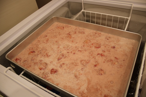 夏に食べたい苺アイスを 苺の旬である春に バットいっぱいに仕込んでおく。