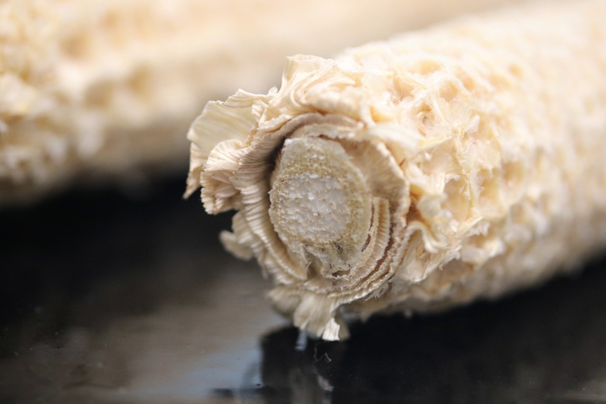 写真はポップコーンとうもろこしの種子を綺麗に取ったあとの芯(花軸)の部分。