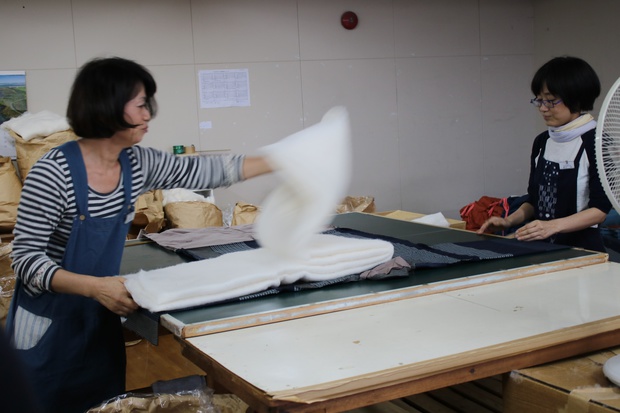 ここからは、半纏(はんてん)に綿を詰める工程の一連の流れです。(最後に動画もあります。)