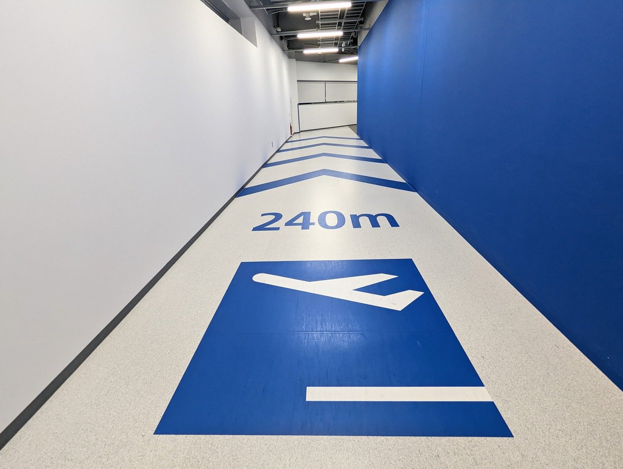 搭乗ゲートまで470m歩きますよー。