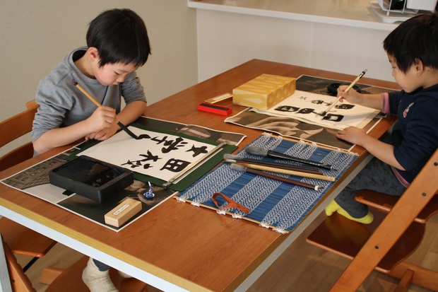 今年の書き初めは自宅にて。 息子二人が集中して書けた時間はわずか5分。 あとは自由時間。 書くことが好きになればそれでいいです。 5分でも集中できたのならそれで成長。