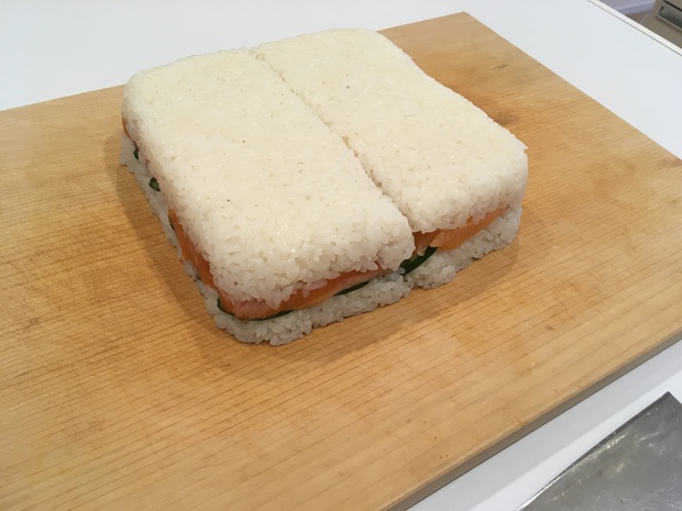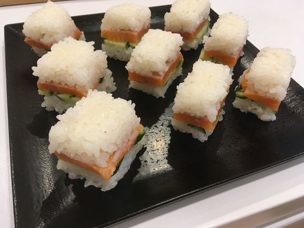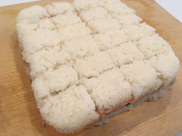 こんな感じで1cmほどの厚みで酢飯を敷き詰めます。