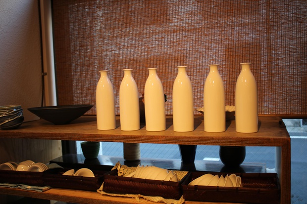 銅のチロリと錫のチロリ、磁器の徳利と陶器の徳利。