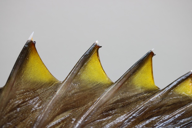クエの大きな胸ビレは磯で安定姿勢を保ったり、海底に胸ビレをつけて大きな体を支えるような役目もあります。