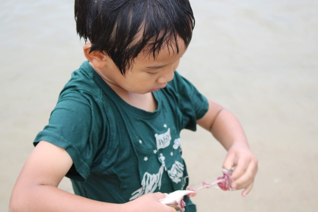 その構造や仕組みが知りたいという好奇心と、 魚の外側の色と内側の色。 この魚は何を食べて、胃袋に何が入っているのか? 自分が子供の頃はそこまで興味がいかなかったな。 手で触れなければ、わからないことは 世の中にたくさんあります。 色々触って大きくなあれ。