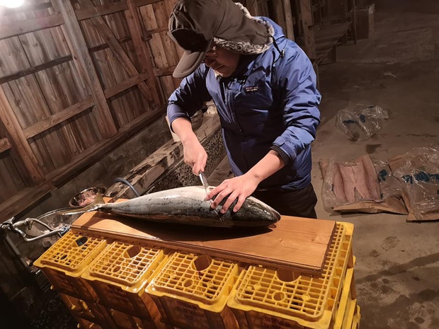 海の真横に水道設備もあるので、魚をさばけて、内臓を洗い流せて、