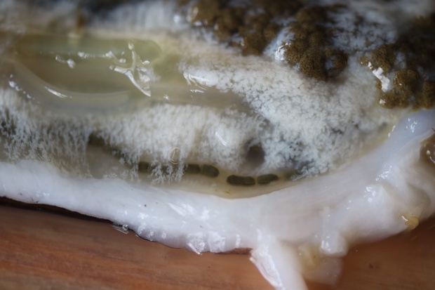 ちょうど身の真ん中あたりまで、内臓が入っているので、