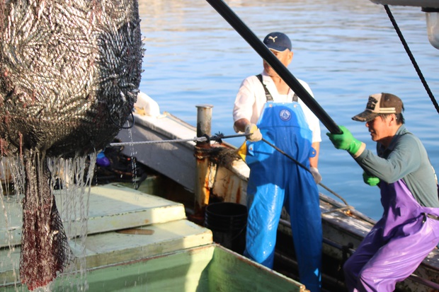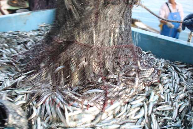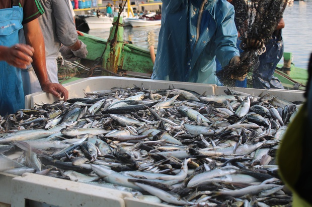 たっぷりのマサバ、ゴマサバ、その他小魚類が仕分けされていました。