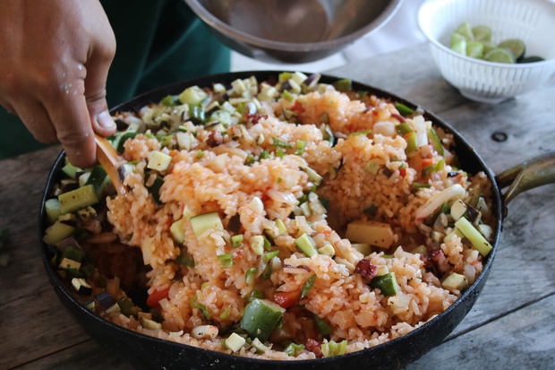 漁師さんの手作りパエリアが朝ごはんで登場。