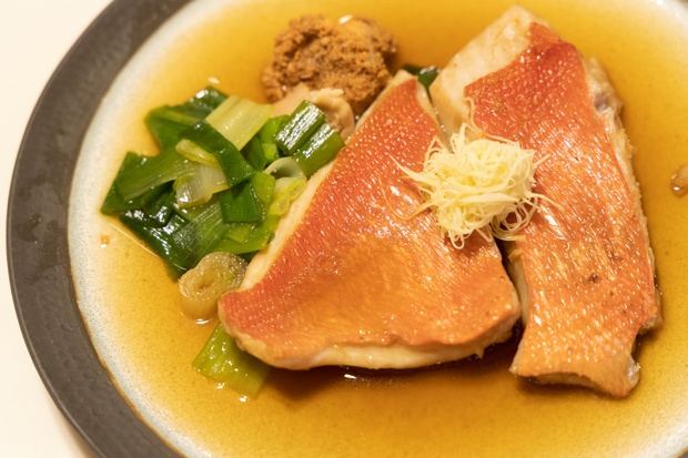 キンメダイの煮付けとキンメダイのあら汁をいただきましょう。