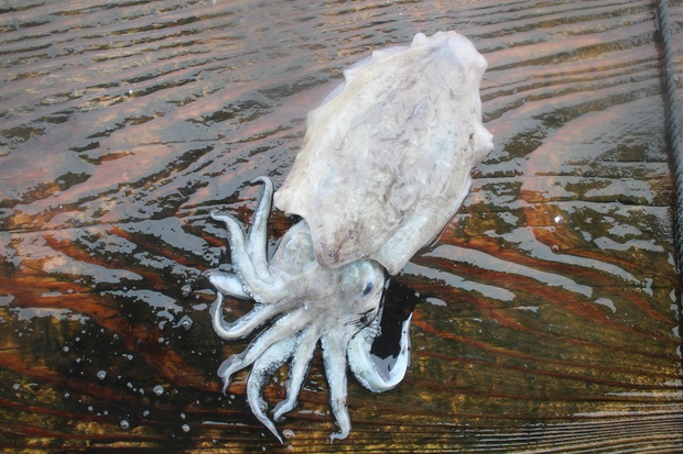 自分で釣ったこの大きなコウイカは、きっと彼の心の中で