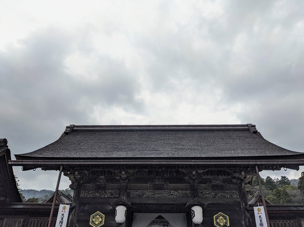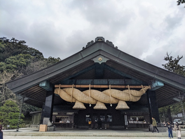 正面の大注連縄(おおしめなわ)は長さ約13メートル、重さ5.2トンに及びます。