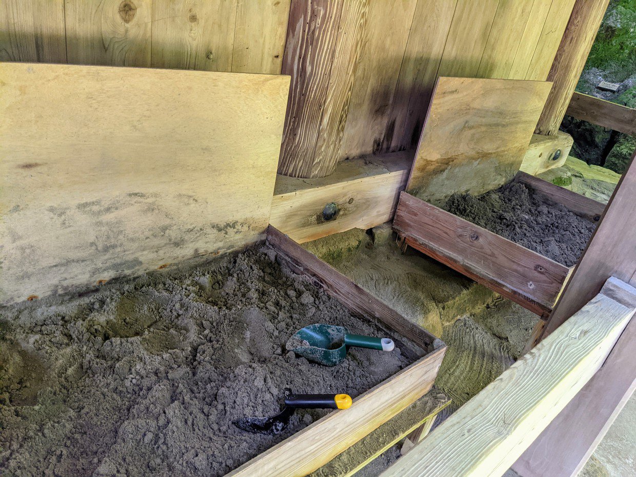 神楽殿を正面から見たときに左右をしっかりと支えている柱の元からは