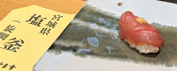 江戸前の仕事をした鮨を紀州前として提供されています。