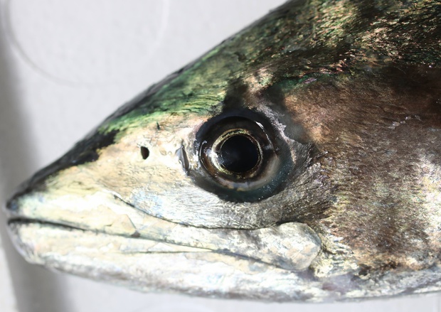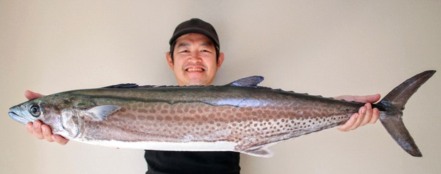 青い背中や、黒い斑模様を見るとサバの仲間なんだと納得できますね。