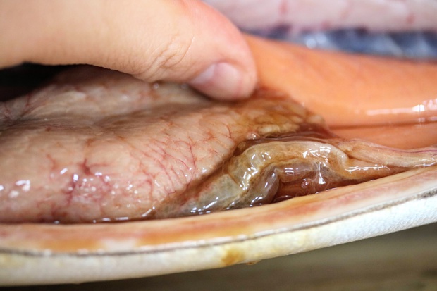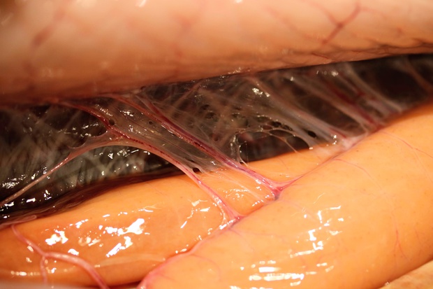 内臓をズルりと取り除くと見えるのがあの膜の奥にある赤い部分。