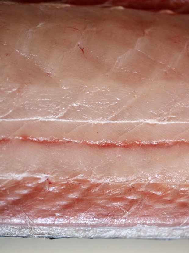 船に上げる際に、手で触らずにギャフで引っ掛けた時の傷でしょうか。