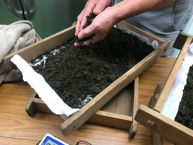 地元海藻のアカモク麹を内田先生が現地で製造指導しているところです。