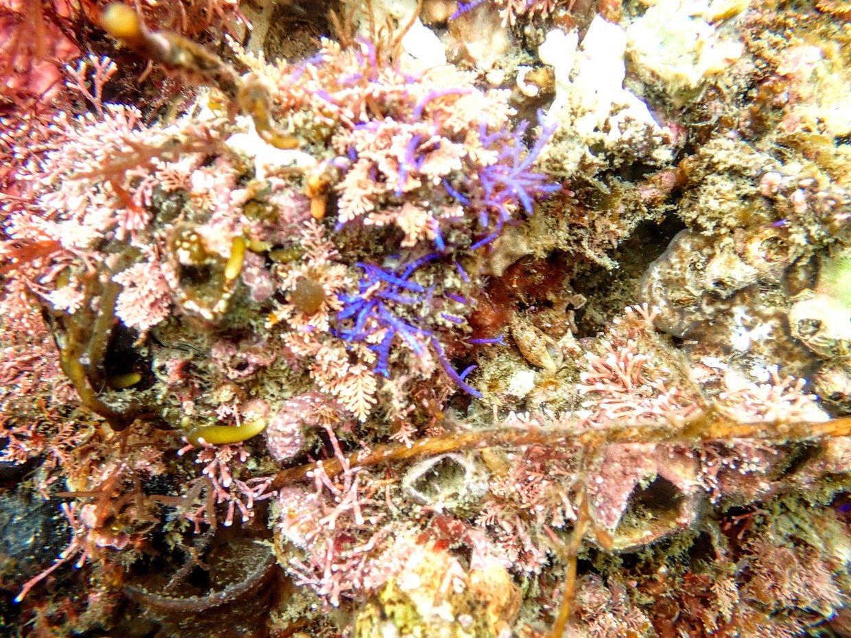 海に潜ると、たまに見かけるこの綺麗に紫色に光る海藻。