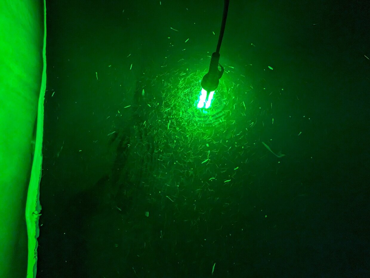暗い日に灯りを照らせば、そこにプランクトンが集まり、それを食べに魚たちも寄ってくるわけですが、
