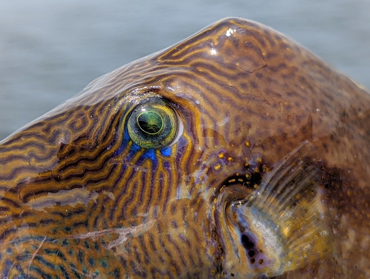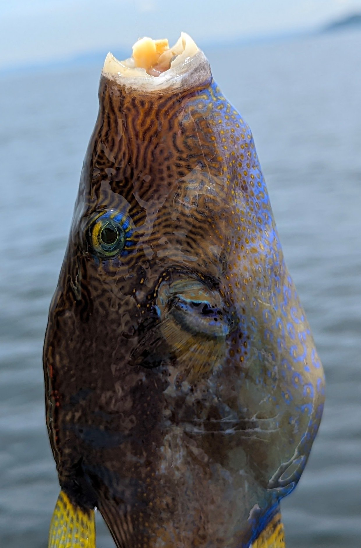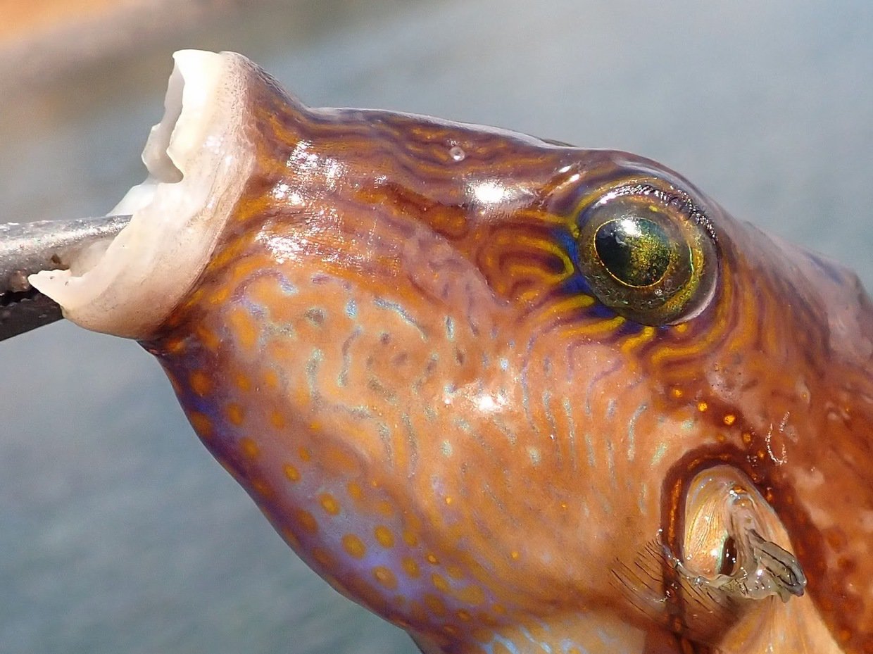 青い模様が入ったキタマクラは、オスにみられる模様で、