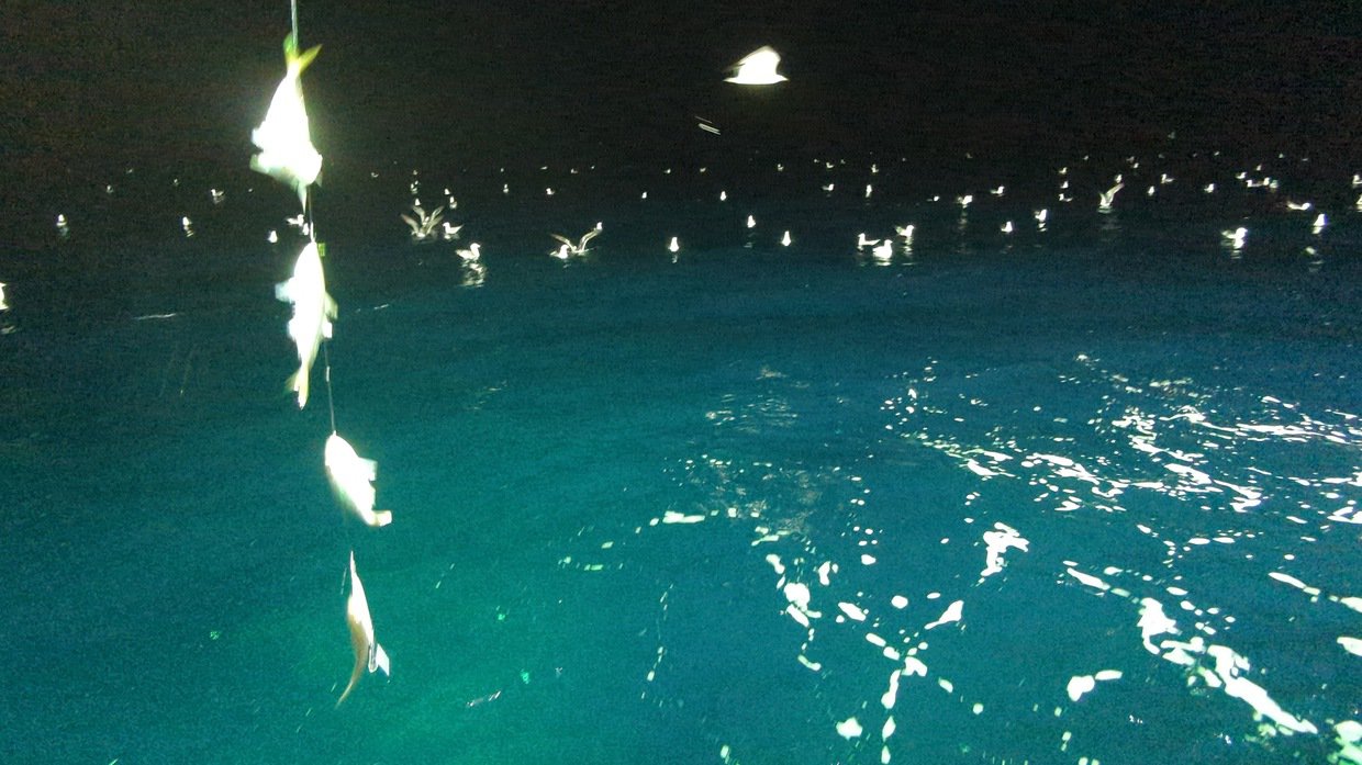 水中灯は、ジワジワとどんどん明るくなって、真っ暗な海を