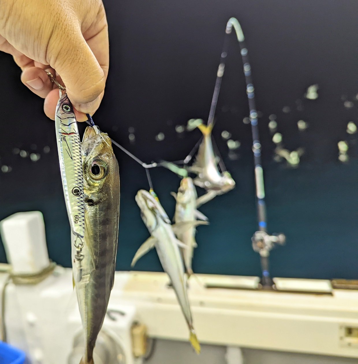 自身の体と比較してこのサイズのジグに喰い付いてきた活発なアジ。