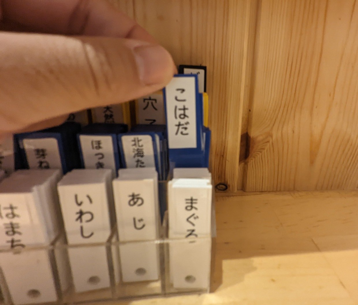 例の札ボックスの中から緑色の札のネタを何か選んで