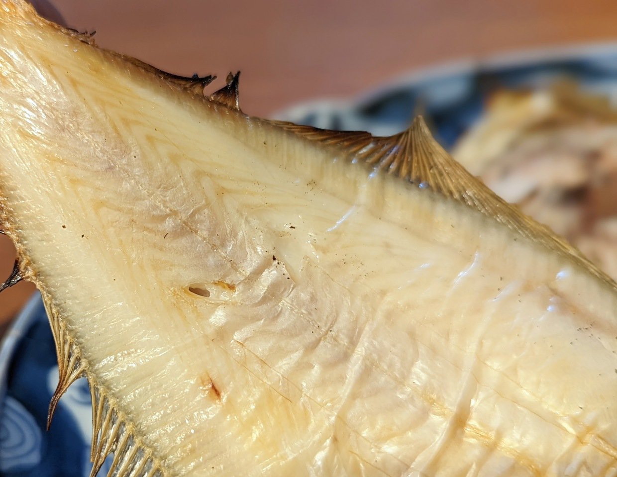 エテカレイ(ソウハチガレイ)のヒレは笹かれい(ヤナギムシガレイ)と比べるとゴツくて硬めです。