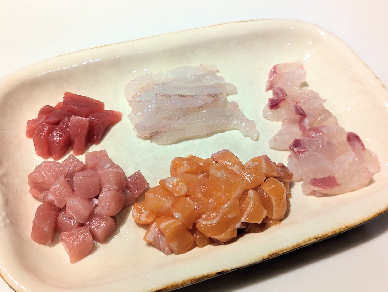 クリスマスツリーに飾るイメージで、魚を細かく切ったり、細長く切ったりします。