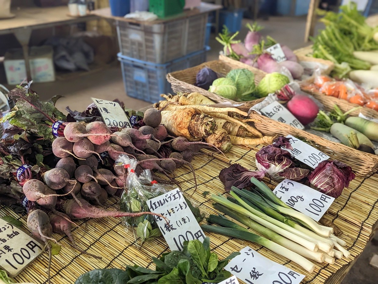 以前と変わらず、色とりどりの新鮮野菜がこの日もたくさん並んでいました。