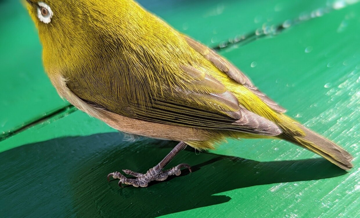 目の周囲の白色部(アイリング)が、和名の由来になっています。