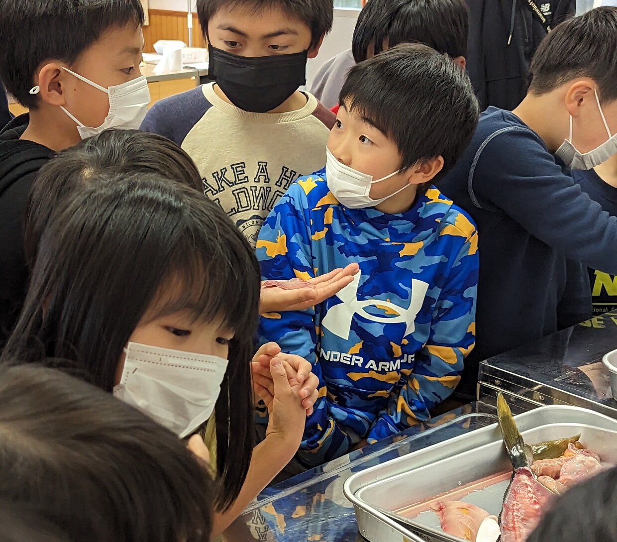 港町の子どもたちでもあまり丸ごとの魚を近くで観察したり、
