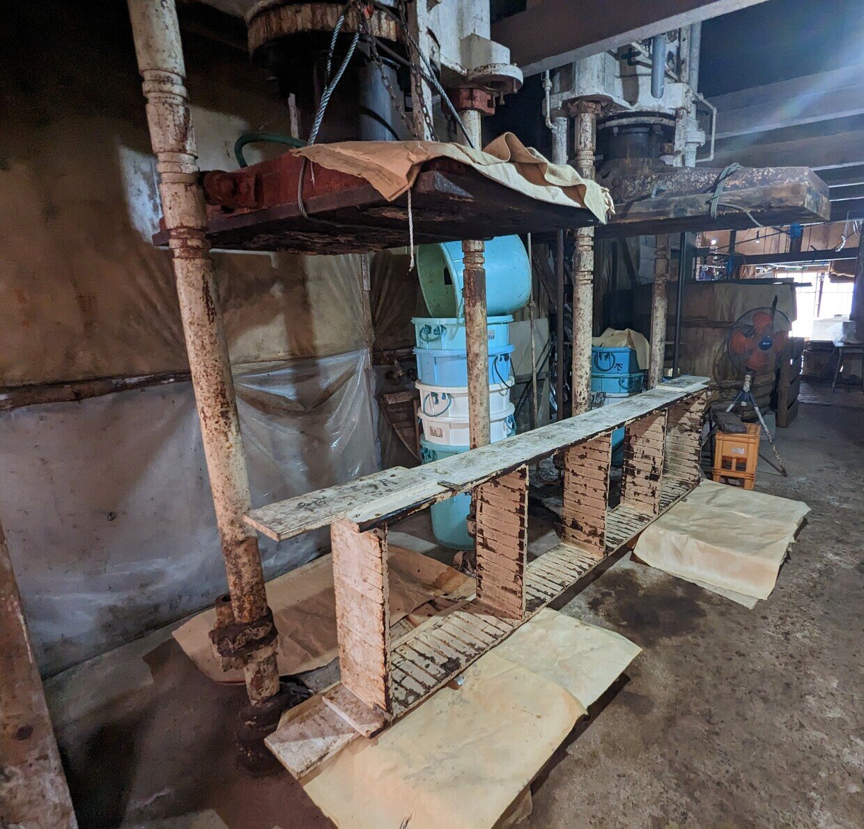 こちらは、たまりを醸造している蔵元さんでしか見かけることのない特殊な道具。