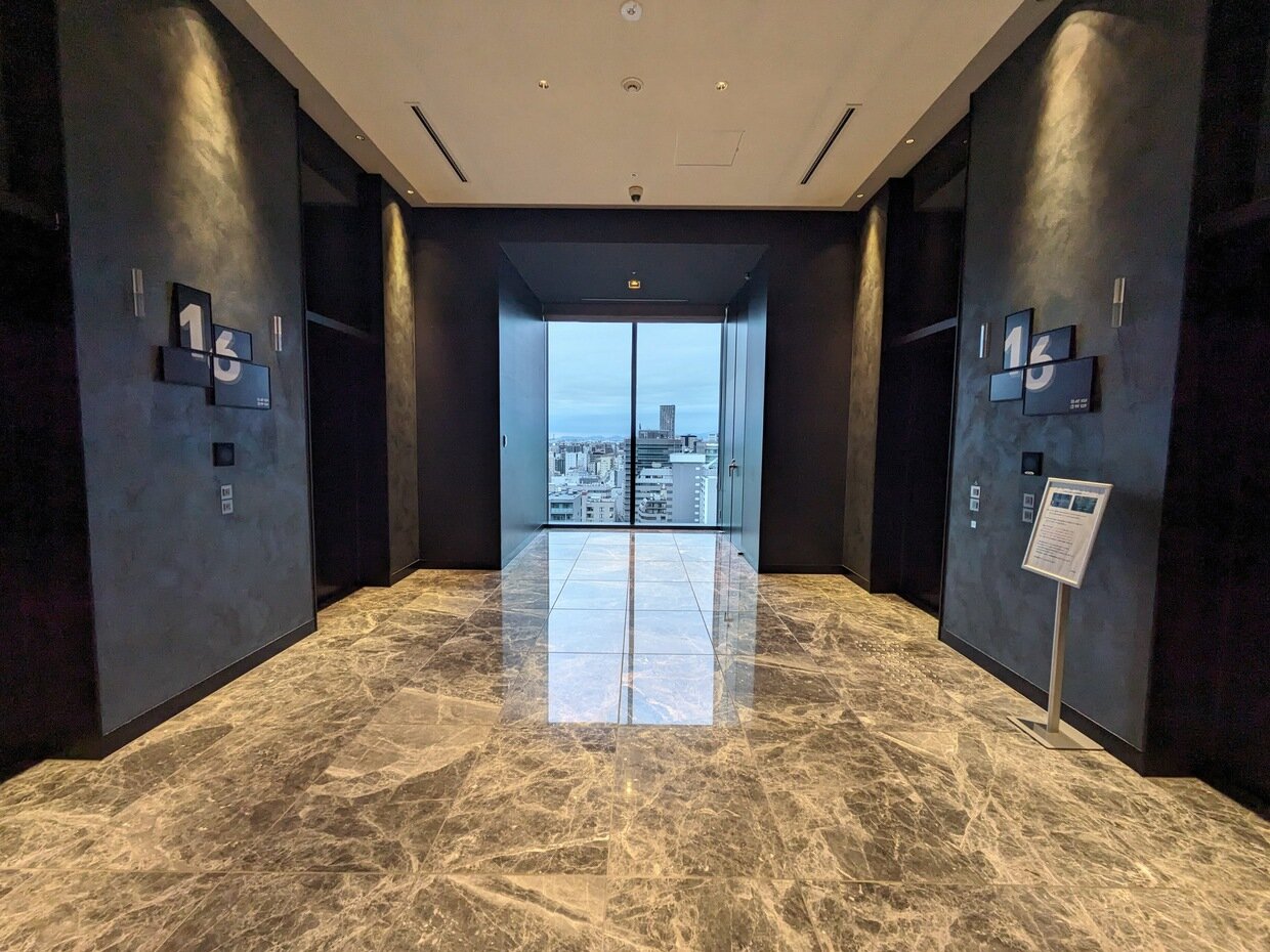 ホテルの裏側に位置する真宗大谷派 難波別院(南御堂)がしっかりと拝めるような設計になっています。
