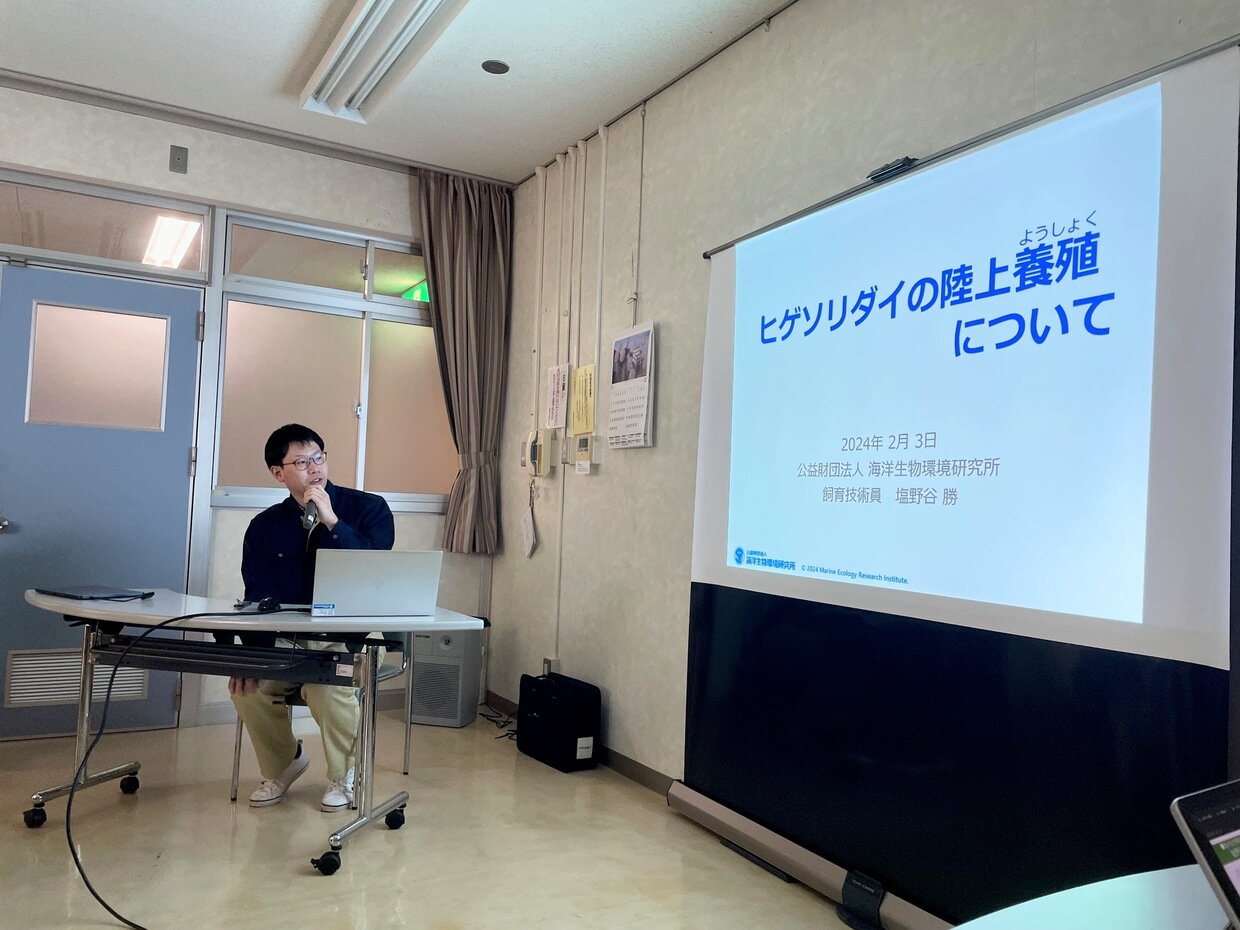 ヒゲソリダイの完全養殖に大きく寄与された海洋生物環境研究所(海生研)の吉川貴志さんです。